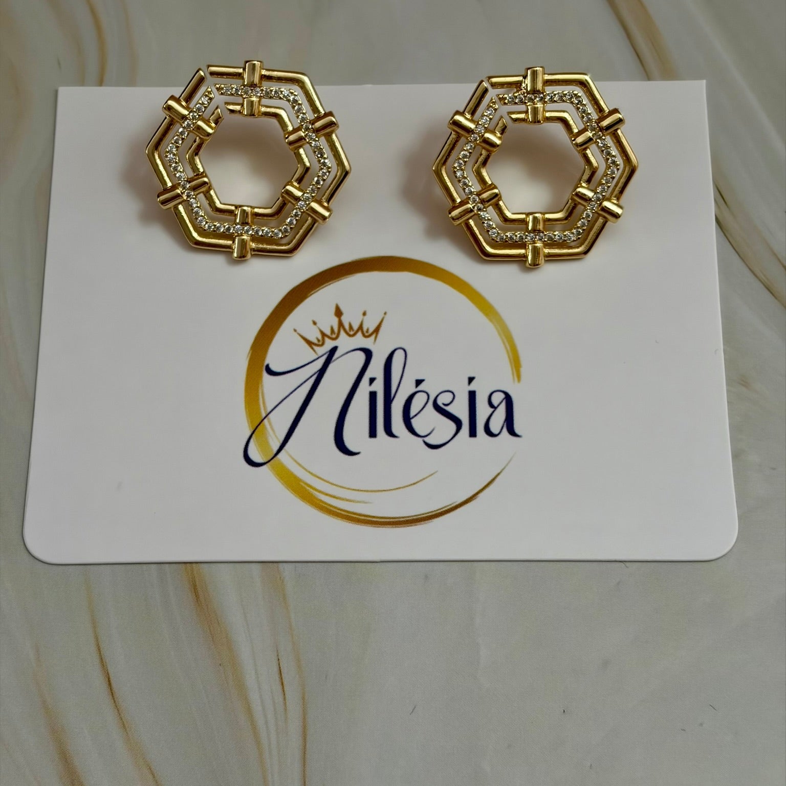 Paire de boucles d'oreilles hexagone strassé